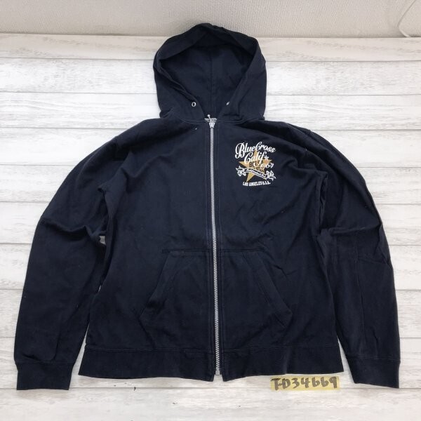 - BLUE CROSS ブルークロス メンズ 両面プリント ジップパーカー L 紺
