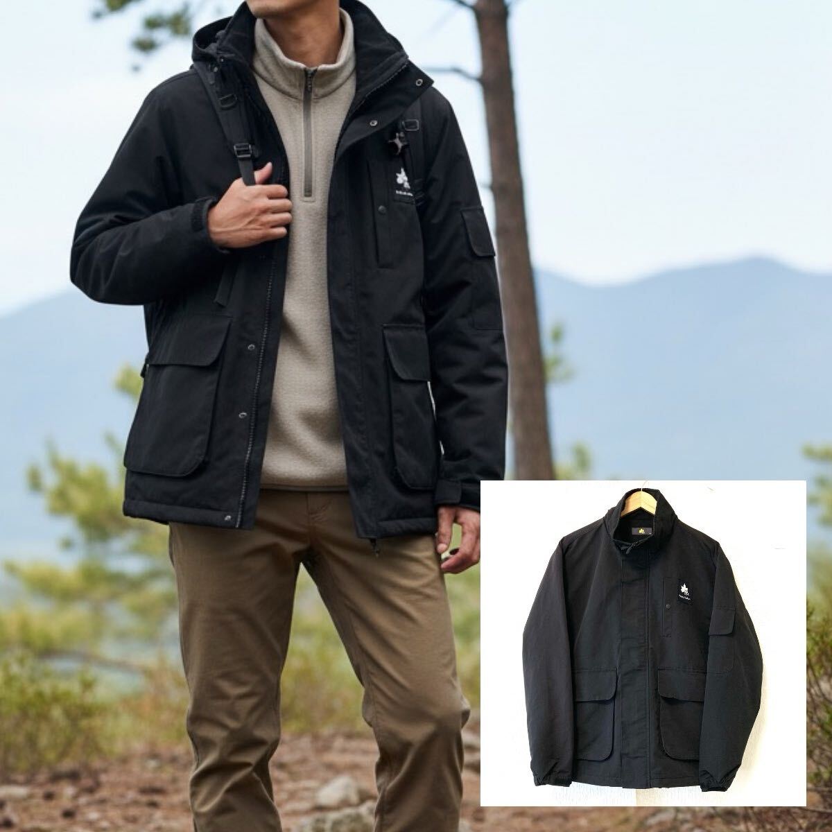 > アウトドアに!【LOGOS】ロゴス ジップアップ マウンテンパーカー ジャケット 防寒 裏地フリース ブルゾン ブラック メンズ M/Y37520UU
