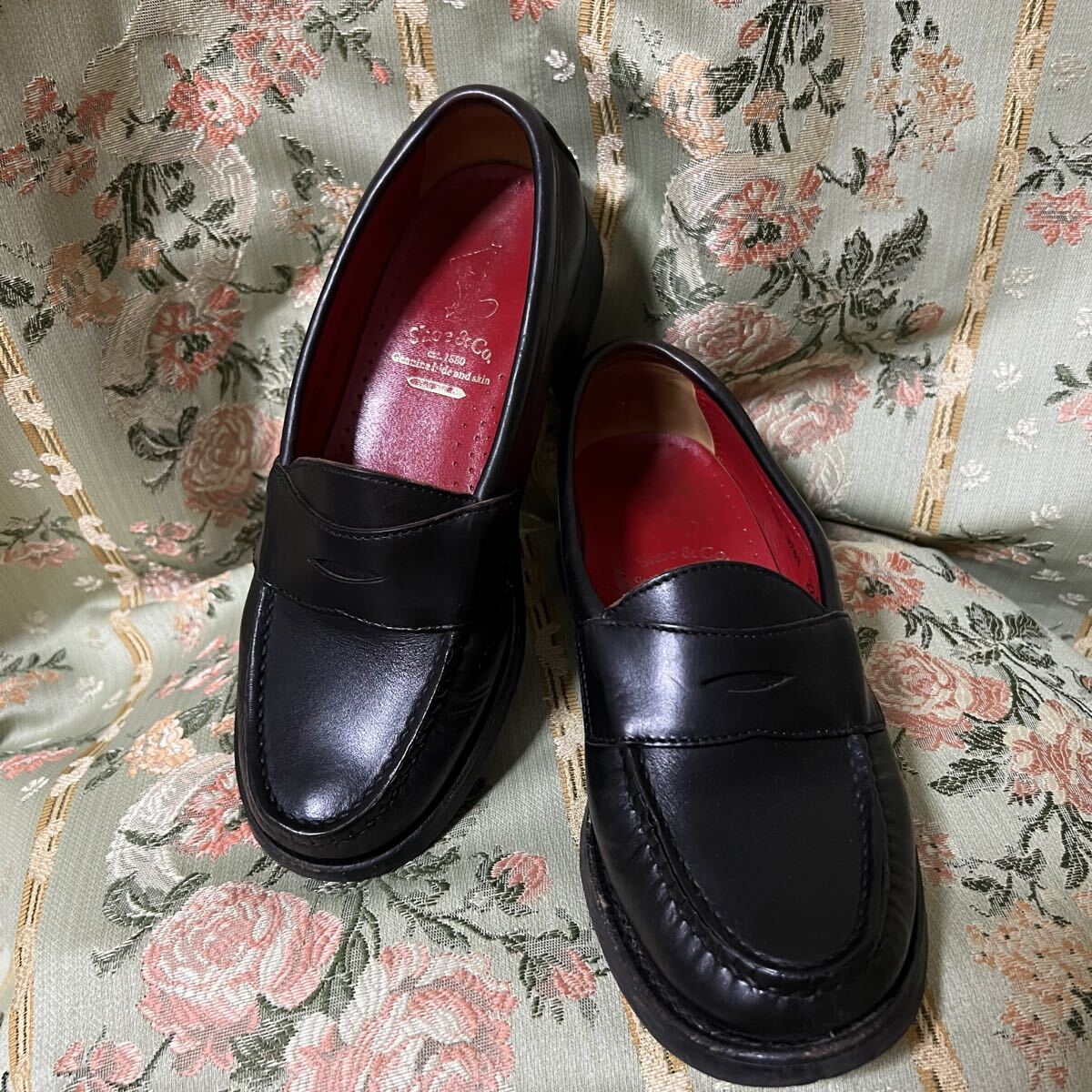 - REGAL リーガル ローファー 22.5cm Horweenレザー使用 黒 ビジネス カジュアル 通学 本革 日本製 ホーウィン コインローファー