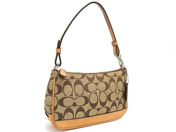- 1円 COACH コーチ GB2411 シグネチャー キャンバス×レザー アクセサリポーチ ミニバッグ レディース ブラウン系 GB2410