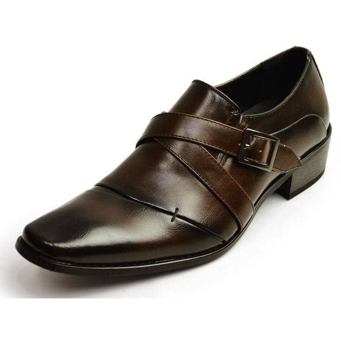 - 新品■24.5cm ビジネスシューズ モンクストラップ ストレートチップ メンズ フォーマル 冠婚葬祭 スクエアトゥ 5cm 身長アップ 紳士靴