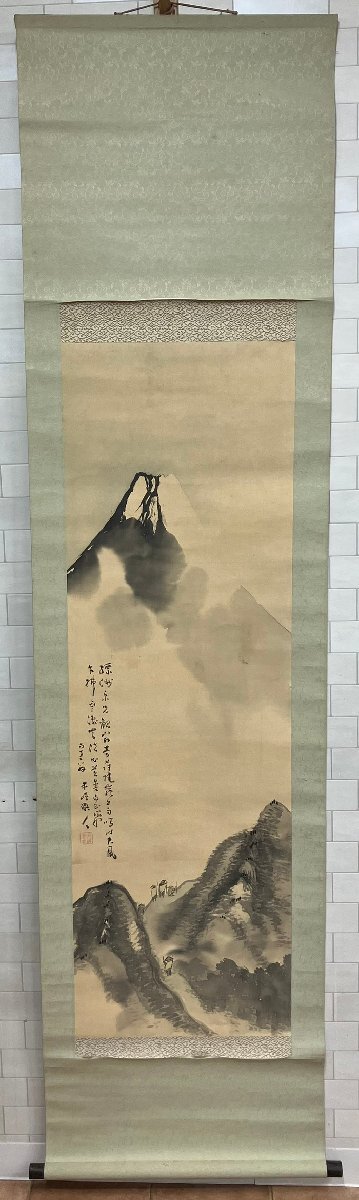> S303 【模写】掛け軸 1点 背景【富士】富士山 人物 日本古美術 中国古美術 美術品 骨董 現状品 縦:約203×横:52㎝
