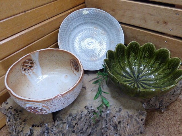 - む827【3点セット】盛鉢 菓子鉢 清水焼 志野焼 織部焼 茶道具