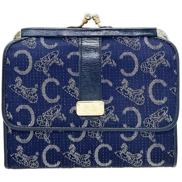 > 14877 セリーヌ 財布 ヴィンテージ Cマカダム がま口財布 キャンバス レザー 革 ネイビー 紺 CELINE サルキー