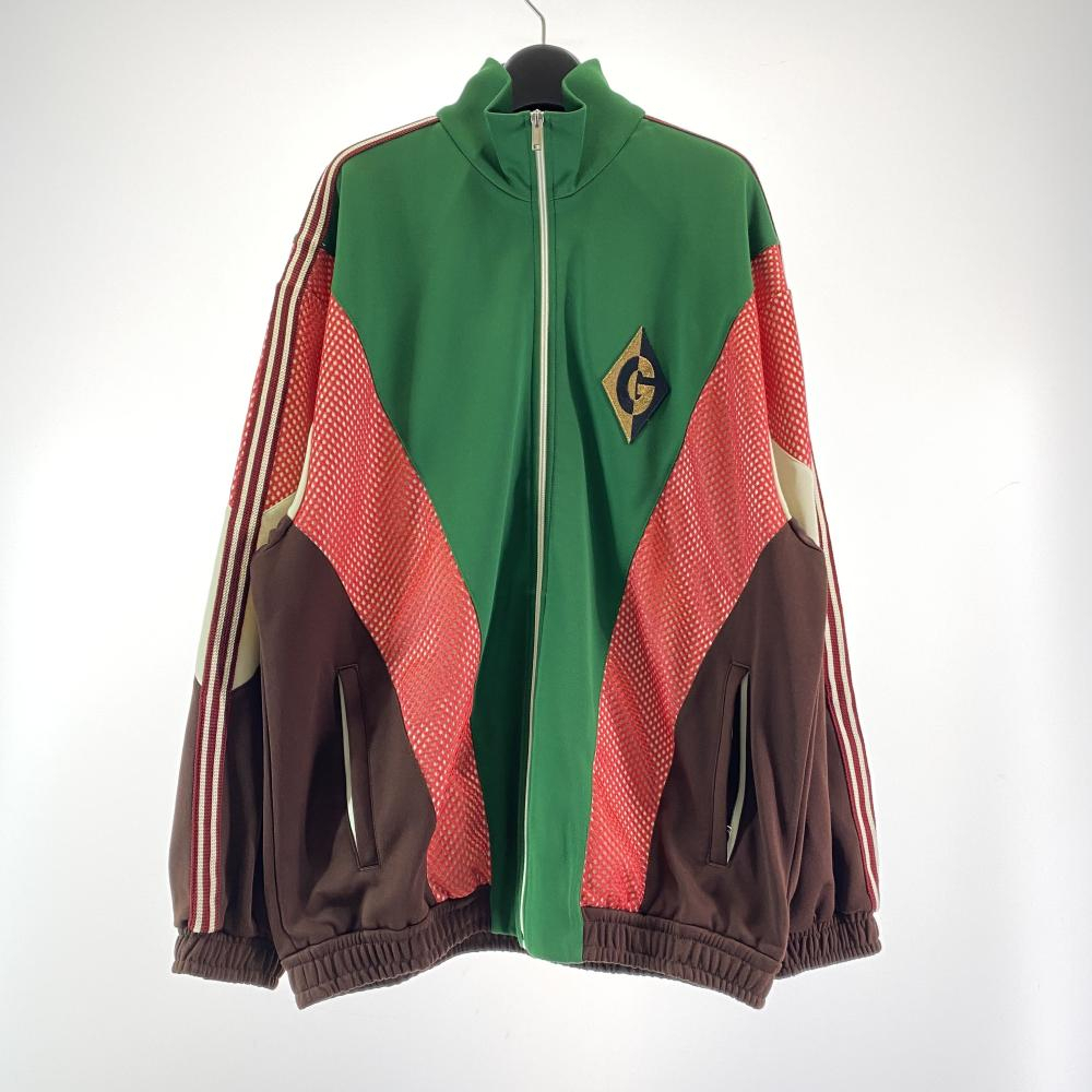 > 【中古】GUCCI ZIP OVER JKT TECHNICAL JERSEY サイズS 587372 グリーン×ブラウン グッチ ジップオーバージャケット [240017731702]