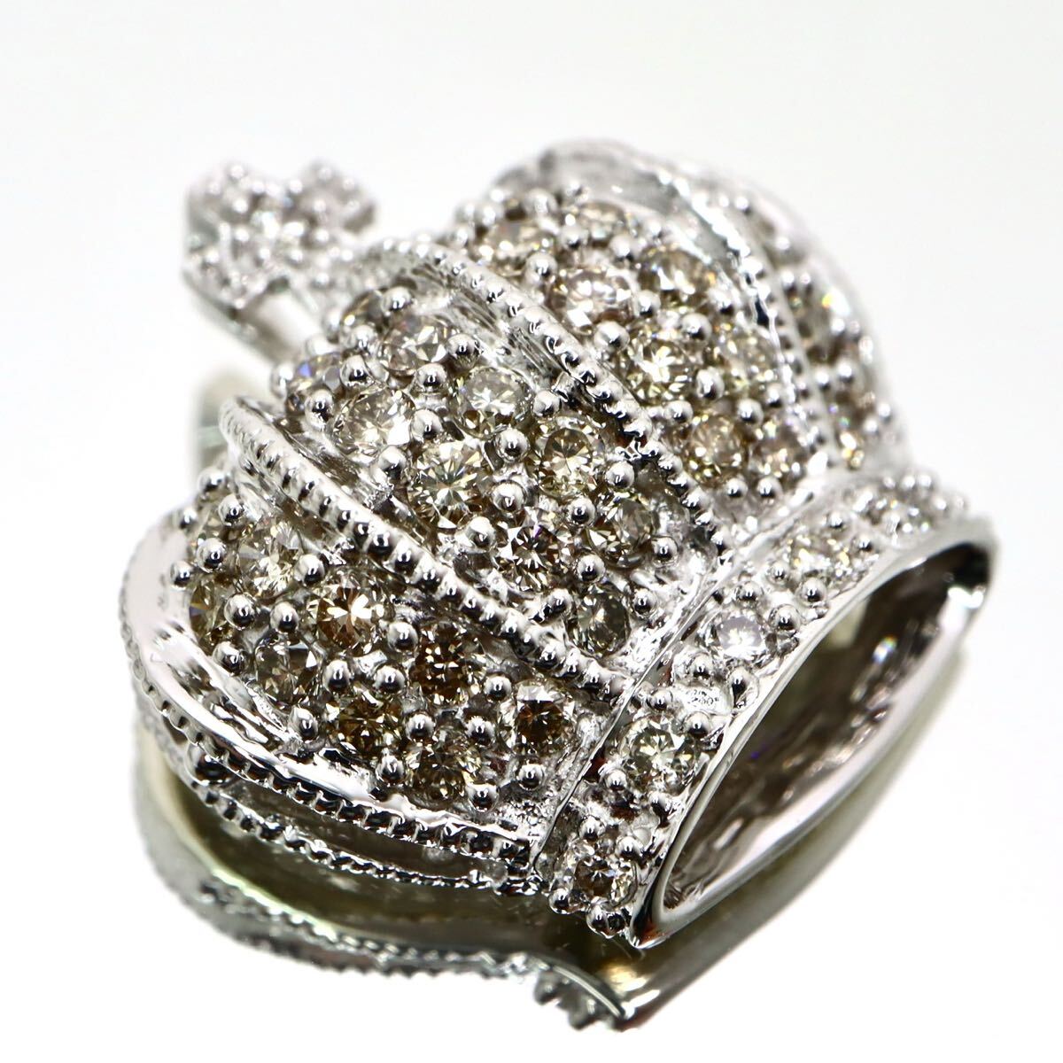 > K18WG!!【笠原真寿美】◆クラウンモチーフ天然ダイヤモンドペンダントトップ◆N 約2.2g diamond necklace 王冠 ネックレス EC6/ X646