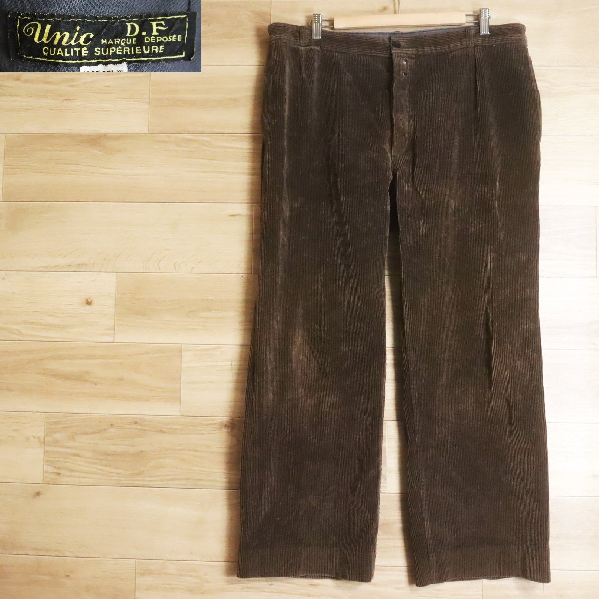 - J4S/R4.29-2 ユーロ古着 UNIC D.F コーデュロイパンツ 太畝 フレンチワーク コットン ボトムス 50 ブラウン ヴィンテージ
