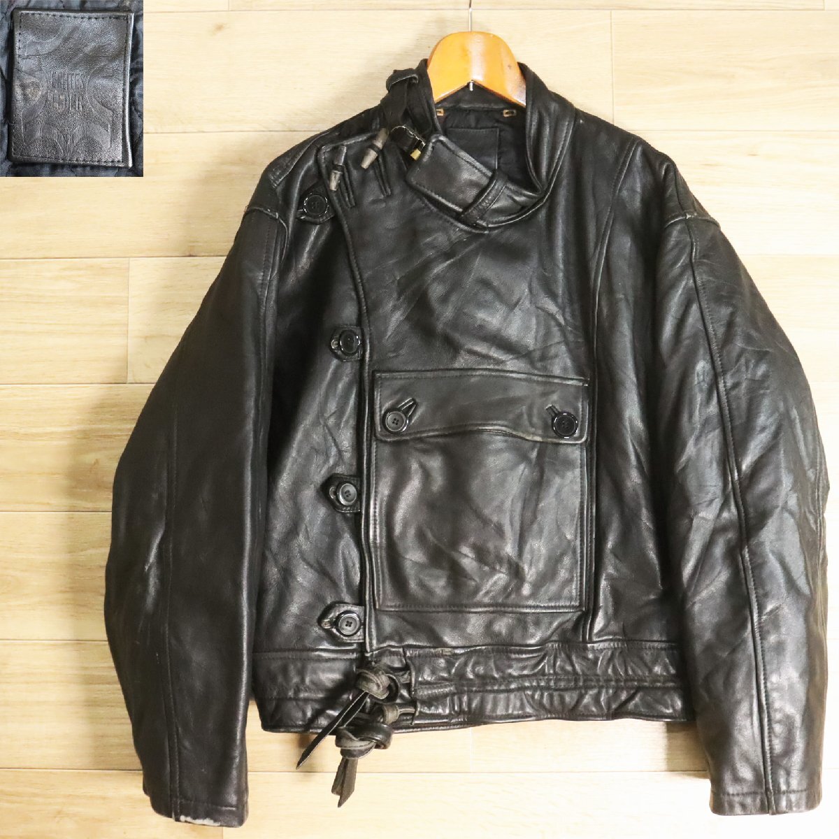 > H4O/Y5.16-7 ユーロ古着 ECHTES LEDER スウェーデン軍タイプ モーターサイクルジャケット 本革 革ジャン 皮ジャン ブラック系