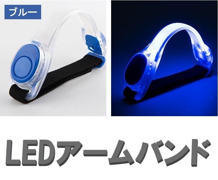 - ☆送料コミコミ☆LED アームバン ド ブルー 2個セット ランニング ジョギ ング 夜間 点滅 電池式 高輝度 トレーニング 運動 反射バンド