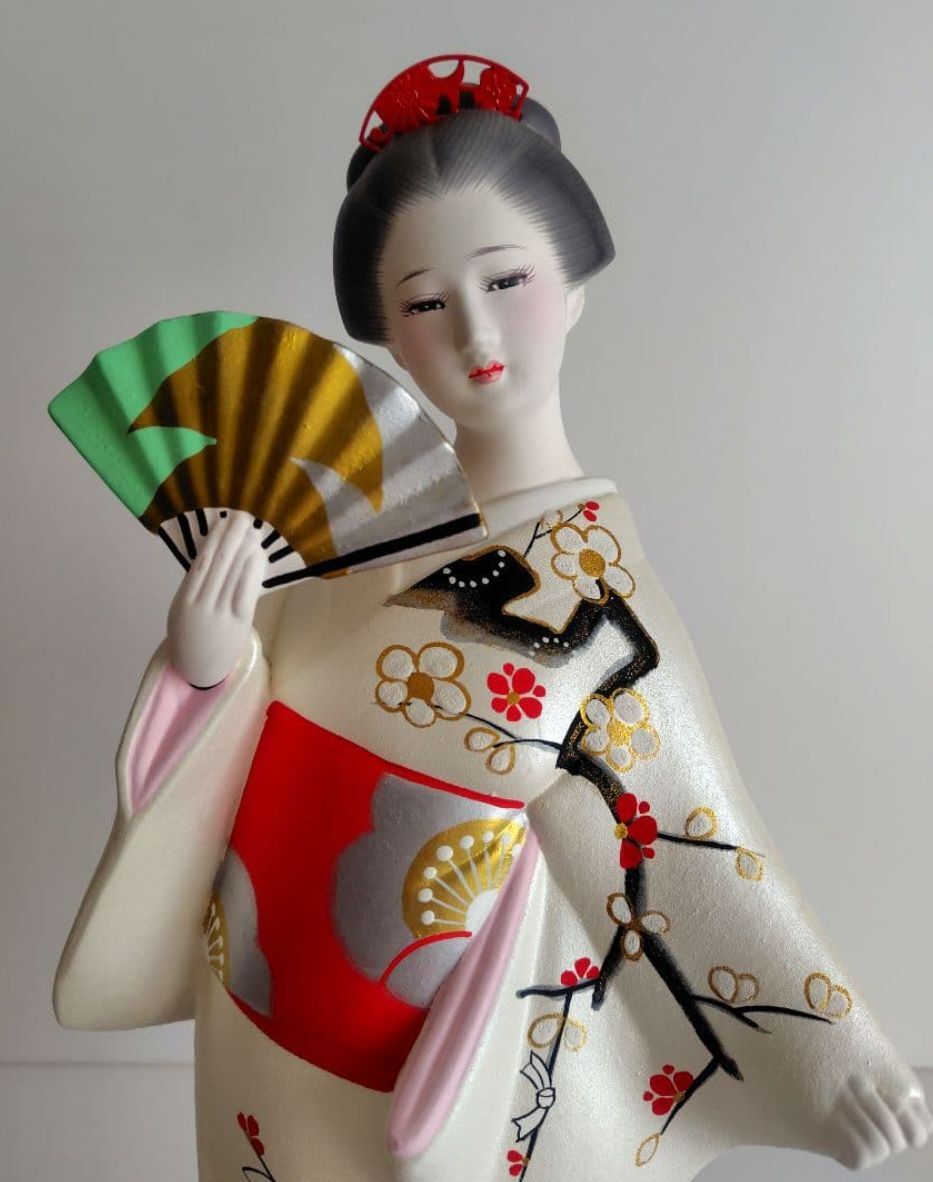 - 博多人形 献寿作『華の寿』ガラスショーケース付き『梅花と舞』 高さ約41cm