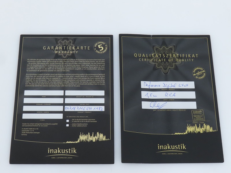 - ■□inakustik REFERENZ DIGITAL 2404 RCA デジタルケーブル 1.5m インアクースティック 元箱付□■031507120m□■