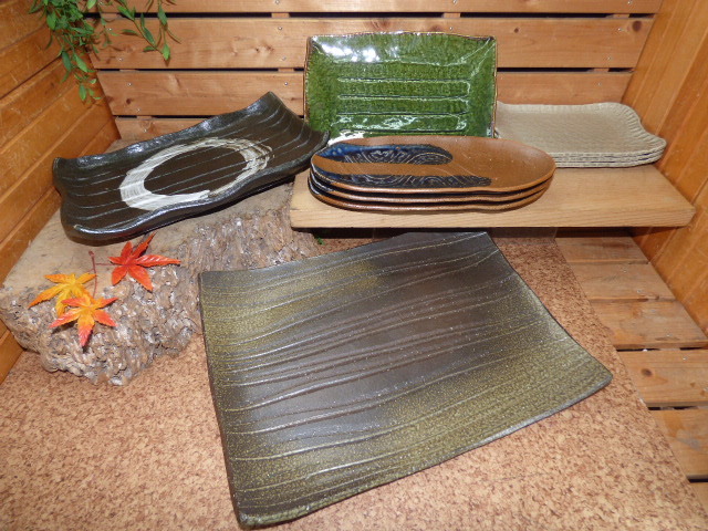 - む841【9点】和食器 角皿 長角皿 楕円形 大皿 盛皿 松月