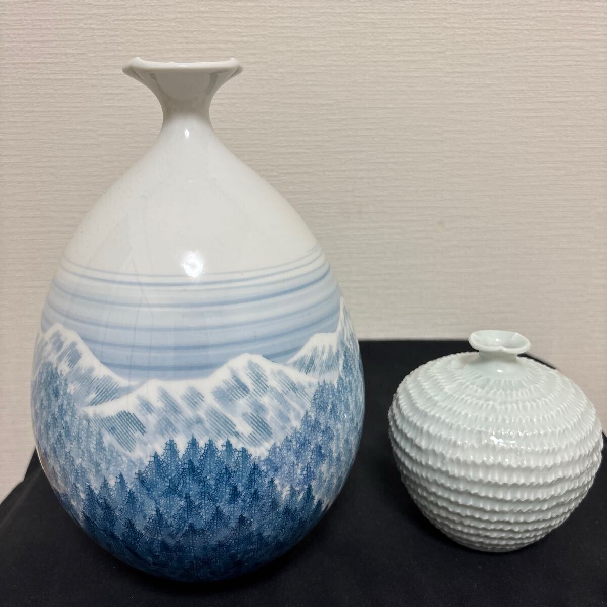 - 藤井朱明 壺 飾り壺 花器 日展人気作家 花瓶 有田焼 早春セート