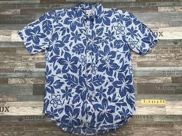 - NEPUCA メンズ ボタニカル 水面柄 半袖シャツ L 水色青