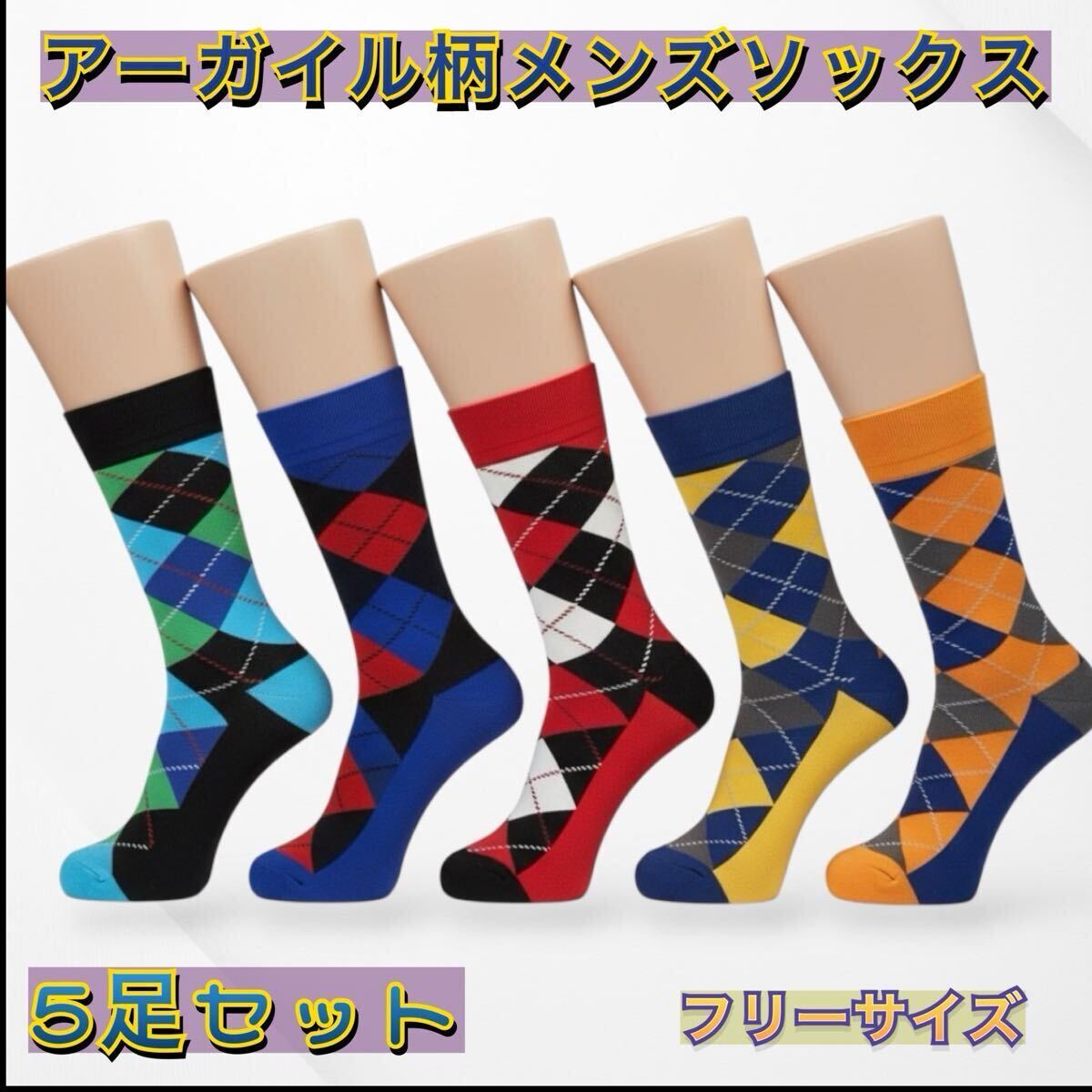 - アーガイル柄ソックス5足セット フリーサイズ [送料無料]ハッピーメンズソックス 紳士靴下 ポップソックス ビジネスソックス