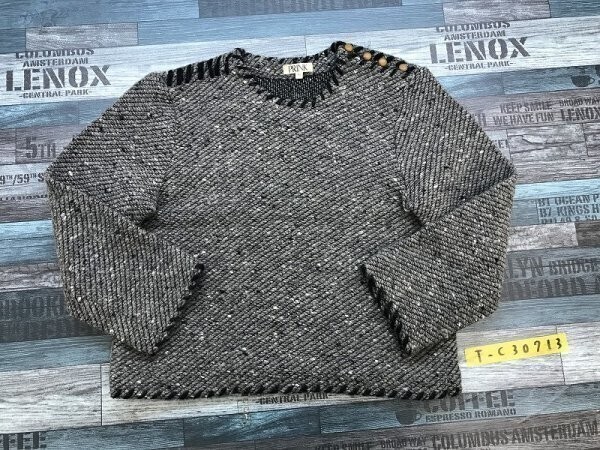 - PRINK レディース 肩ボタン付き ショート丈 ニットセーター 9A2 杢グレー
