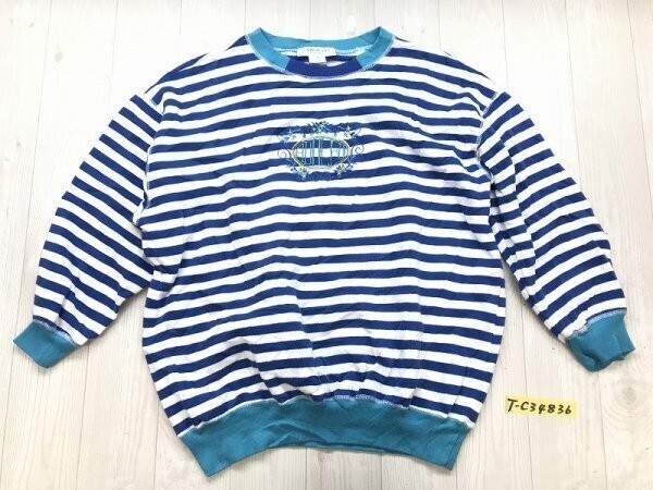 - ADOLFO SPORT レディース ロゴ刺繍 ボーダー柄 裏起毛 ドルマン スウェットトレーナー M 青白