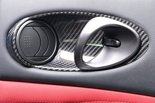- 「RSW」フェアレディZ(RZ34/400Z)用インナーハンドルパネルx左右(綾織りブラックカーボン/クリア塗装仕上げ)