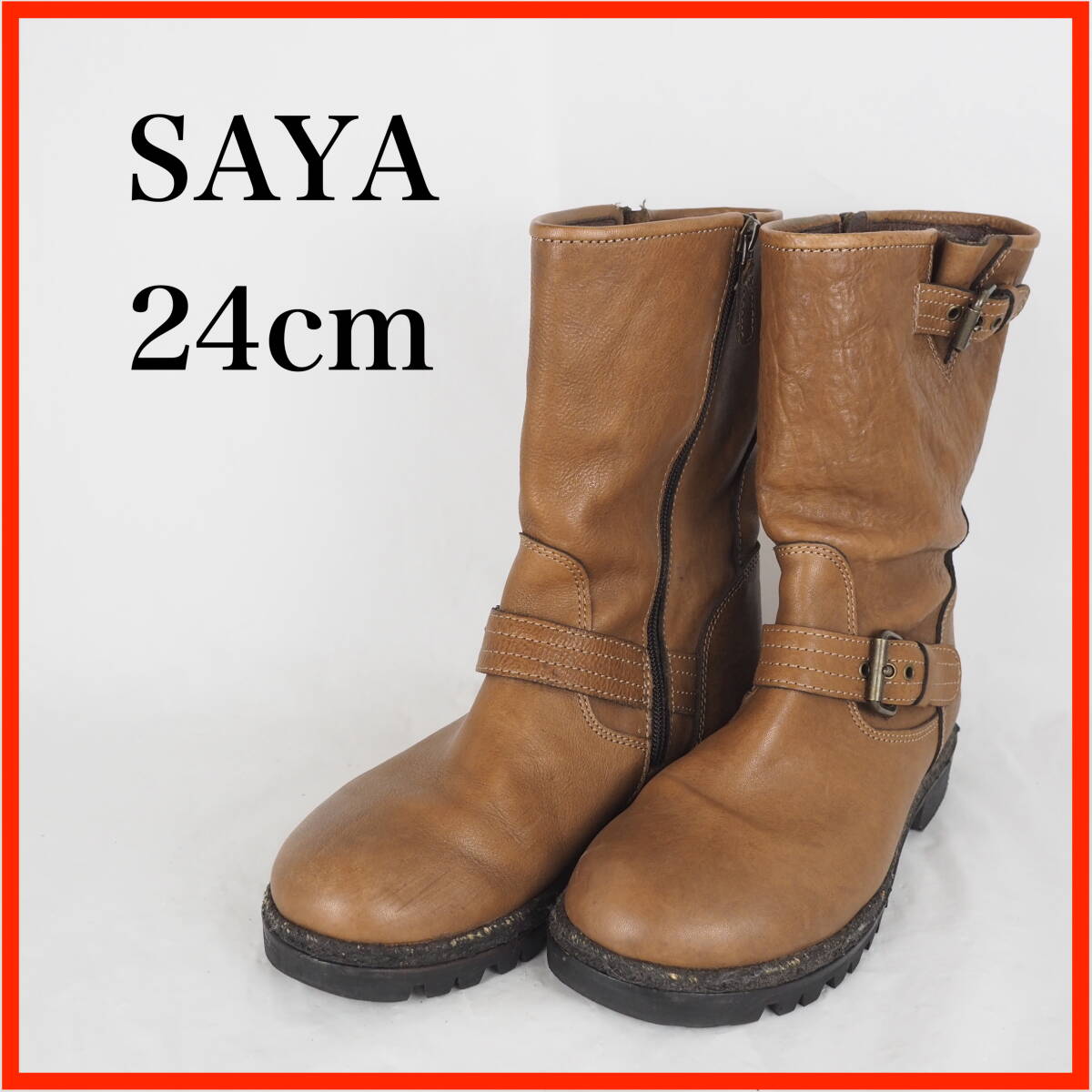 - GB0874*SAYA*サヤ*レディースショートブーツ*24cm*茶