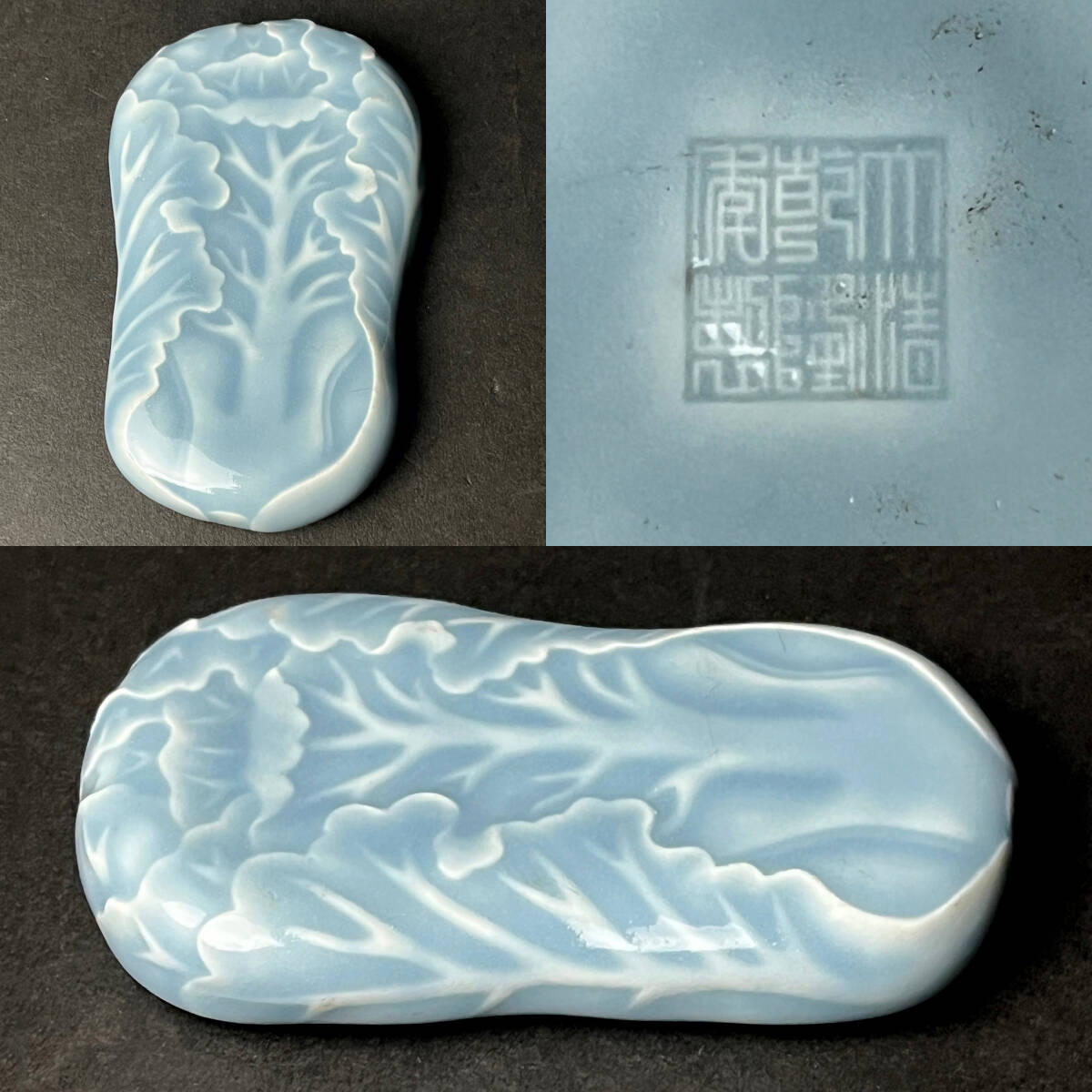 - 唐物 天青釉墨床 大清乾隆年製 款 景徳鎮 文房四宝 中国美術 古玩 B8-74