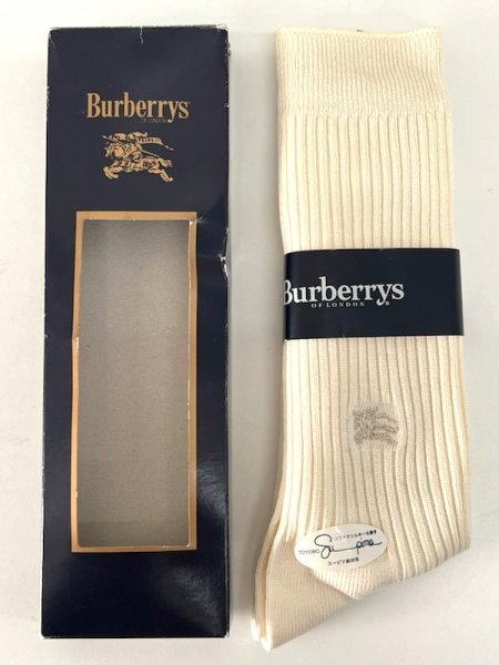 - 【丸-2518】◆Burberrys[バーバリー]メンズ 靴下◆クリーム色無地/25~27cm/ソックス/スピーマコットン◆※未使用長期保管品●KT