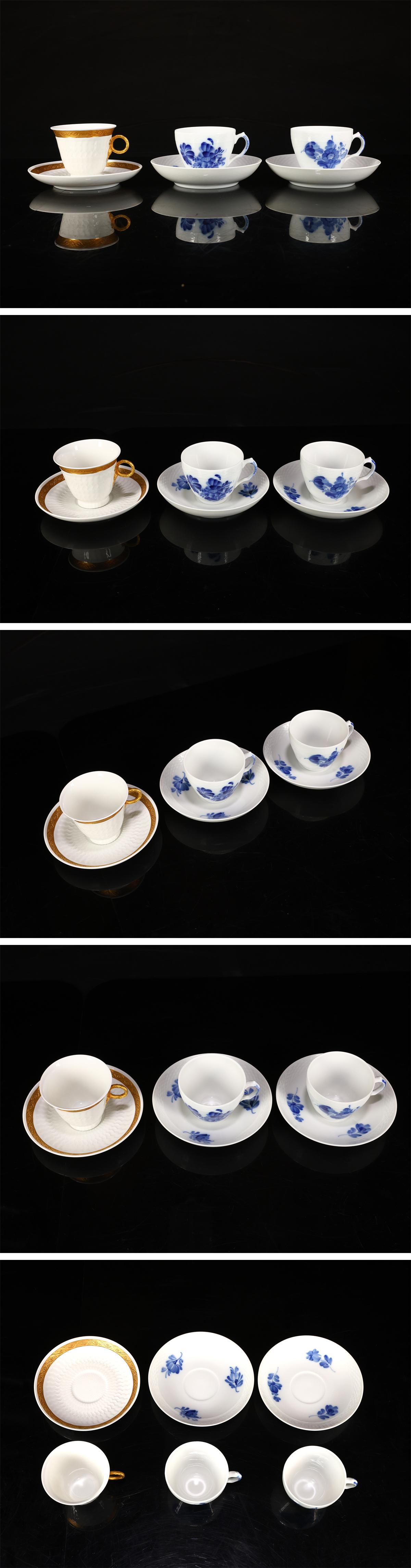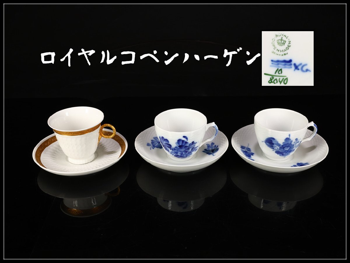 > 【吉】CN769 ROYAL COPENHARGEN 【ロイヤルコペンハーゲン】 デミタス カップ&ソーサー 三種 3組 6点セット/美品!