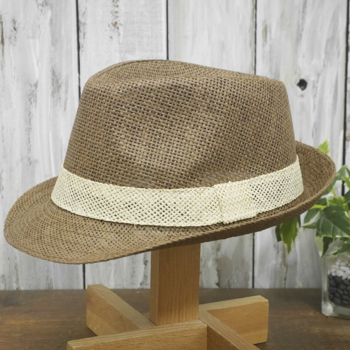 - 全国一律送料450円 ストローハット ストローベルト フェドラハット ブラウン シンプル 男女OK ハット パナマ ボルサリーノ 中折れ