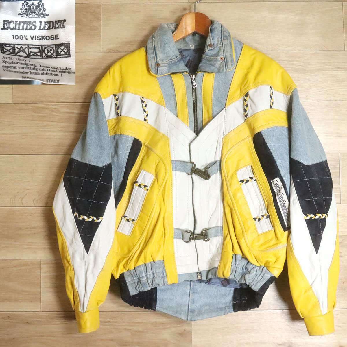 > *11K/R4.10-2 ユーロ古着 イタリア製 GIORGIO GRAZIANO デニムジャケット 本革 レザー切り替え ブルゾン デザインジャケット