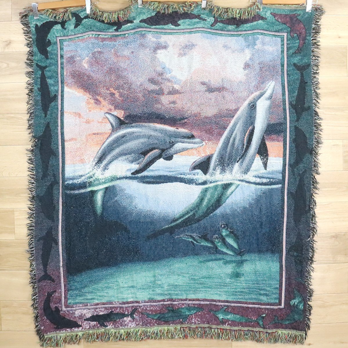- B9-6 I/D10.24-7 イルカ ドルフィン 海 絵画 ラグ マット カーペット ブランケット タペストリー マルチカバー ソファーカバー