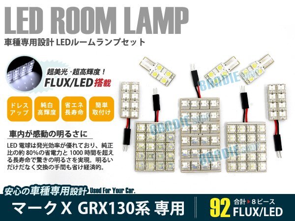 > GRX130系 マークX 8ピース 合計92ブロック発光 ルームランプ LED化 白発光 高輝度FLUXタイプ 一台分セット