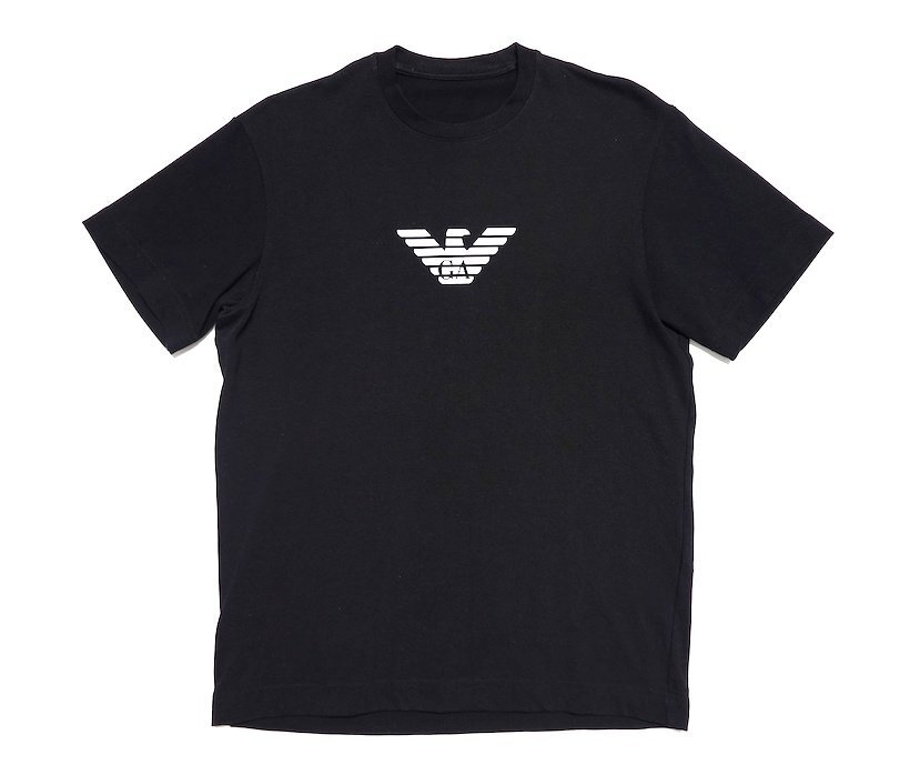 > 22SS 極美品 EMPORIO ARMANI エンポリオアルマーニ SURFER LIFE IS A WAVE イーグル ロゴ Tシャツ ブラック コットン メンズ XXS