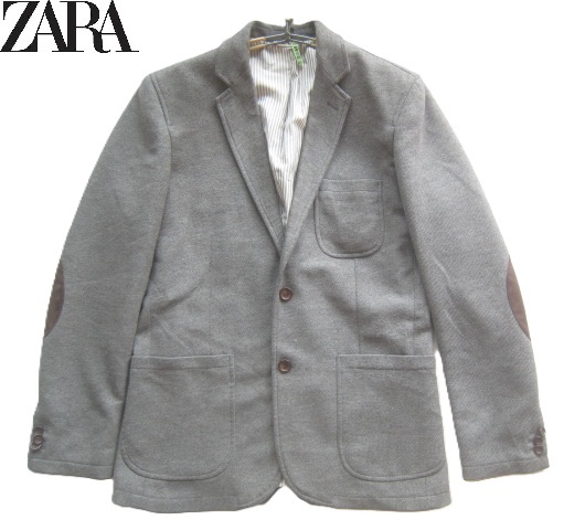 > 美品トルコ製!!ザラ ZARA*美シルエット 肘パッチ付き ポリレーヨンニット織りジャージー2つボタンジャケット 48 実寸M グレー