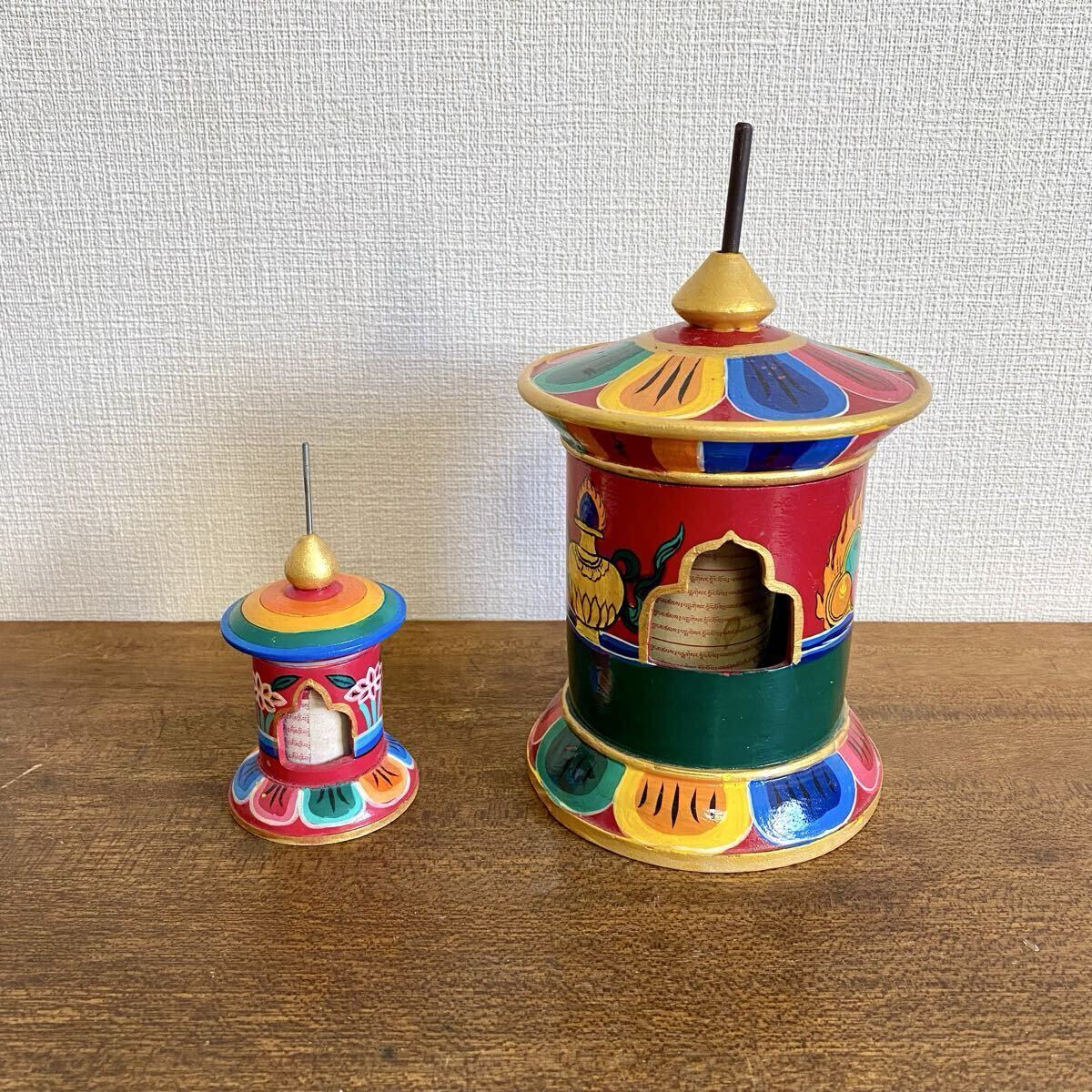 - チベット密教 カラフル マニ車 法具 2点セット / 卓上 転経器 円柱形 仏教 ヴィンテージ