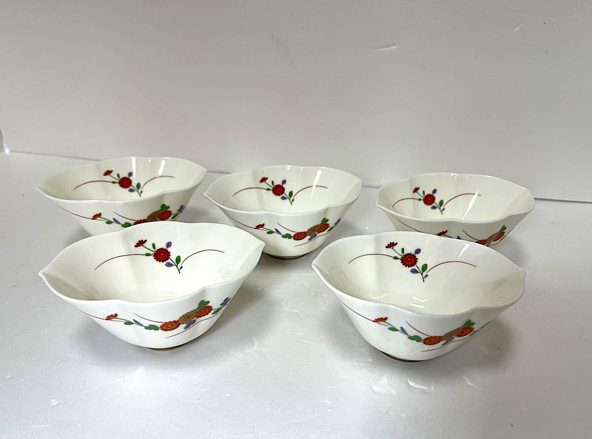 - ◆◇ R952) 美品 香蘭社 金彩菊 小鉢 花菱型 5客セット ◇◆
