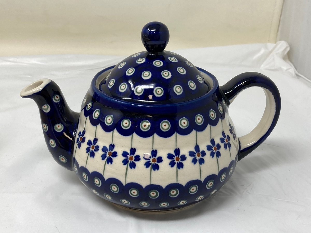 ◆ポーリッシュポタリー ティーポット 青×白 陶器 本体のみ 中古◆16114★拍卖