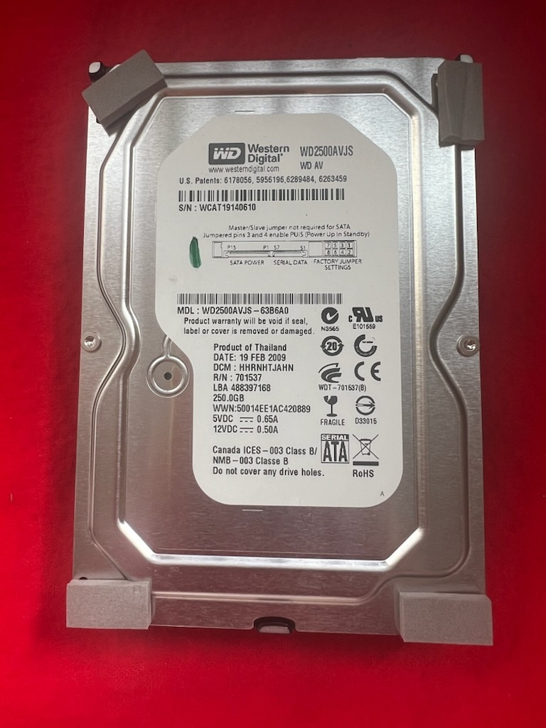 - 不良返金保証 ハードディスク Western Digital WD2500AVJS-63B6A0 250GB(レコーダー BD-HDW22から外し) (k31)