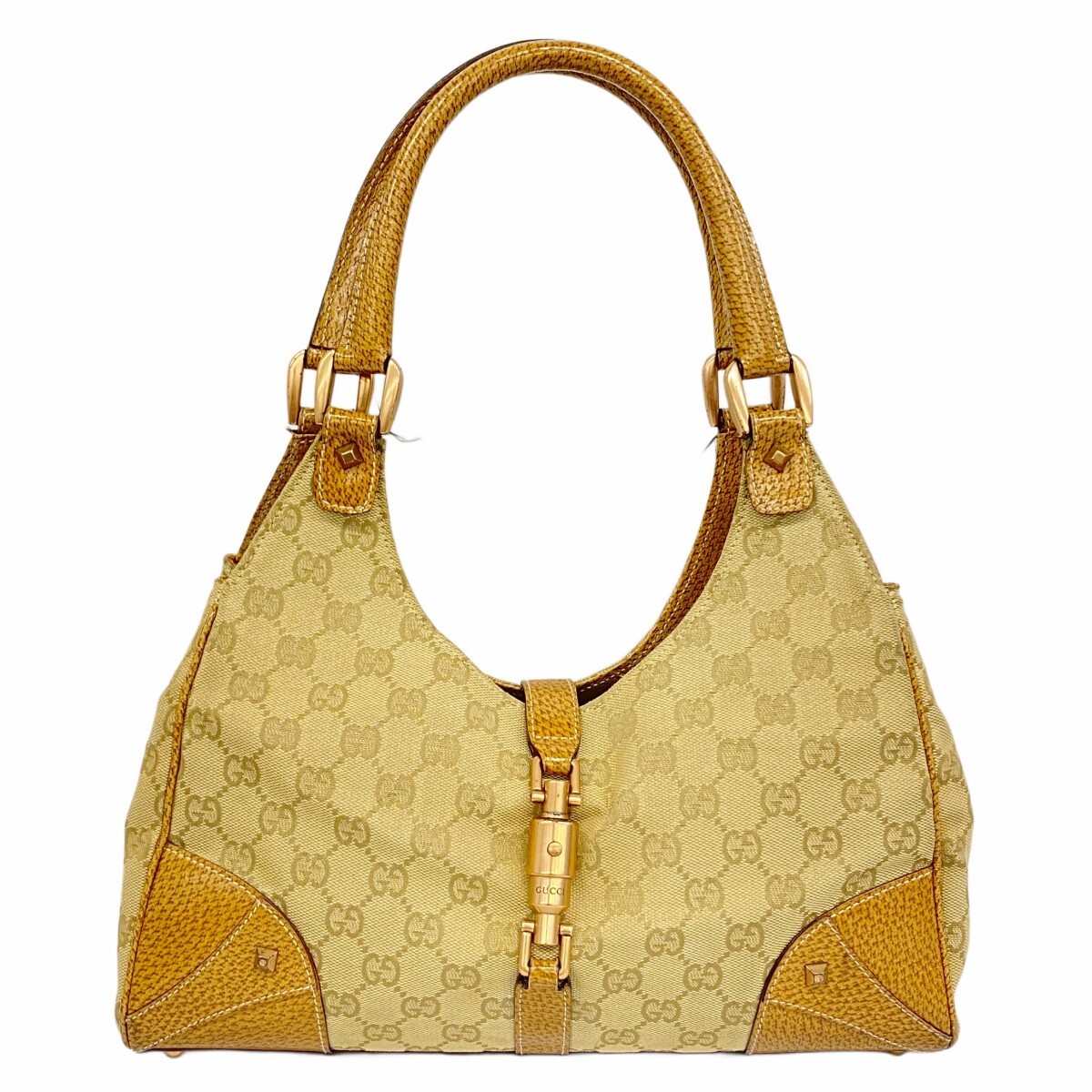 - 【5ob0649】グッチ ハンドバッグ ニュージャッキー 124407 キャンバス ベージュ ピンクゴールド金具【中古】レディース