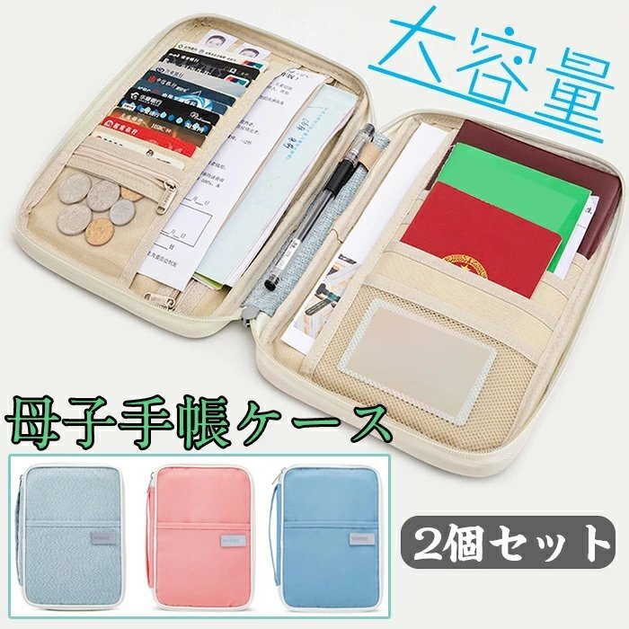 - 母子手帳ケース 通帳ケース 保険証 診察券ケース お薬手帳 ふたり分 大容量 収納 あり 自分用 男の子 女の子 2個セット☆3色選択/1点