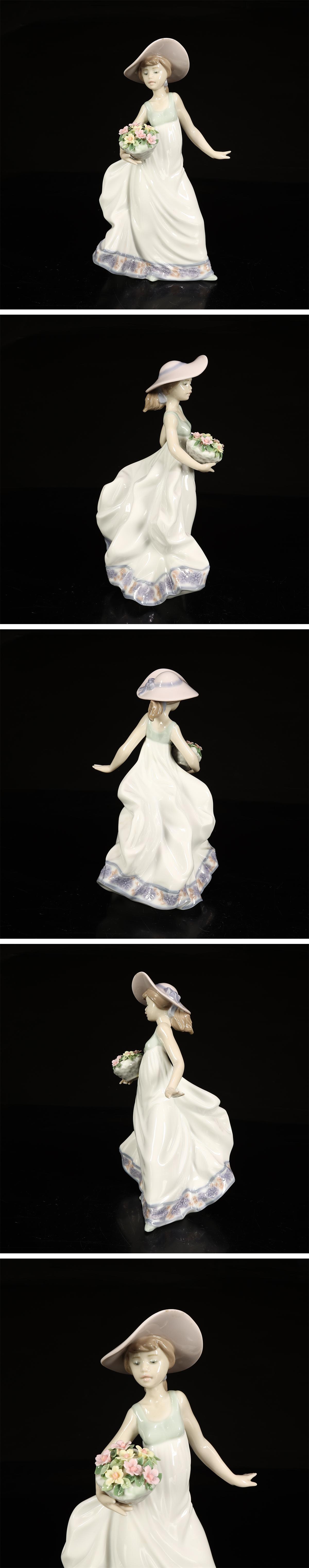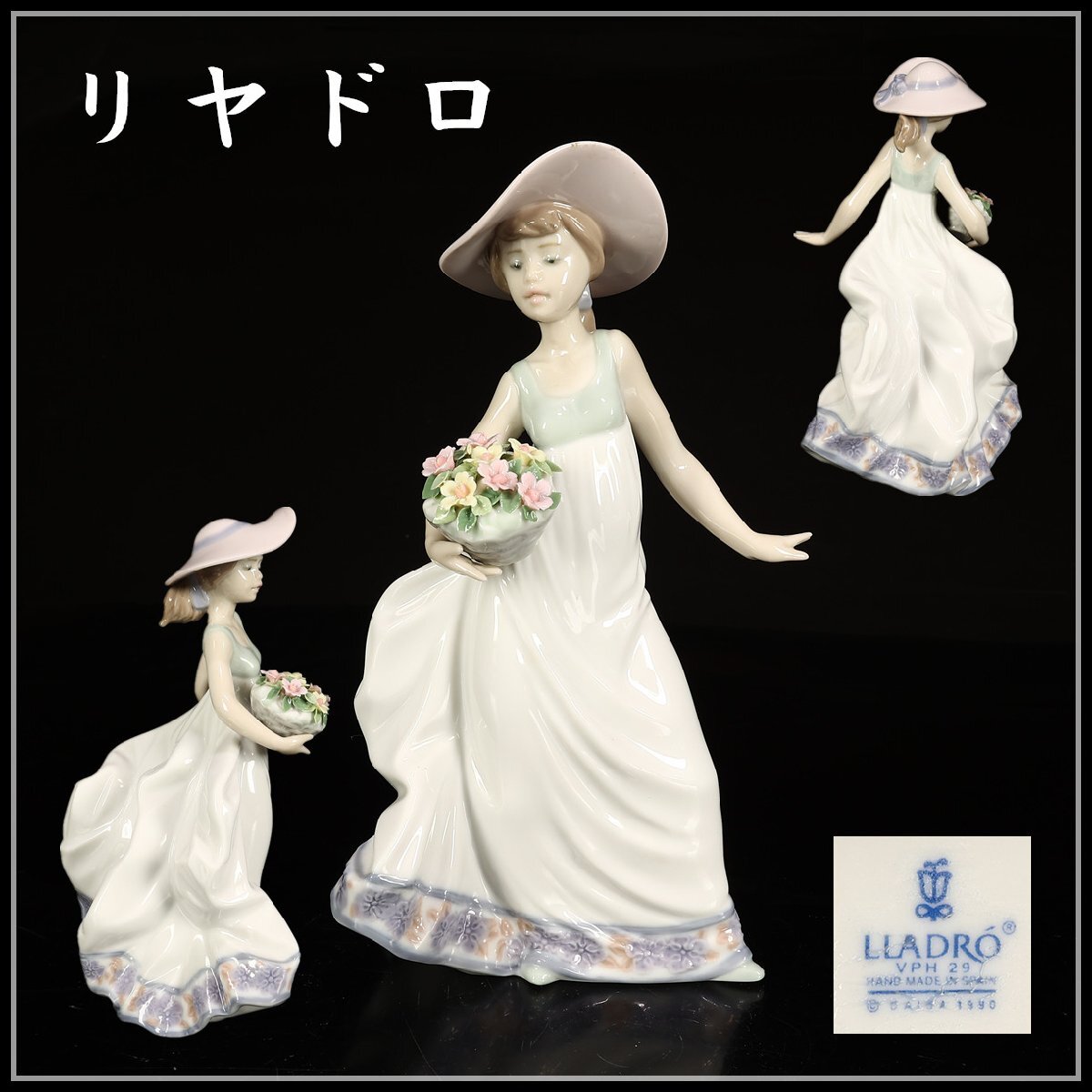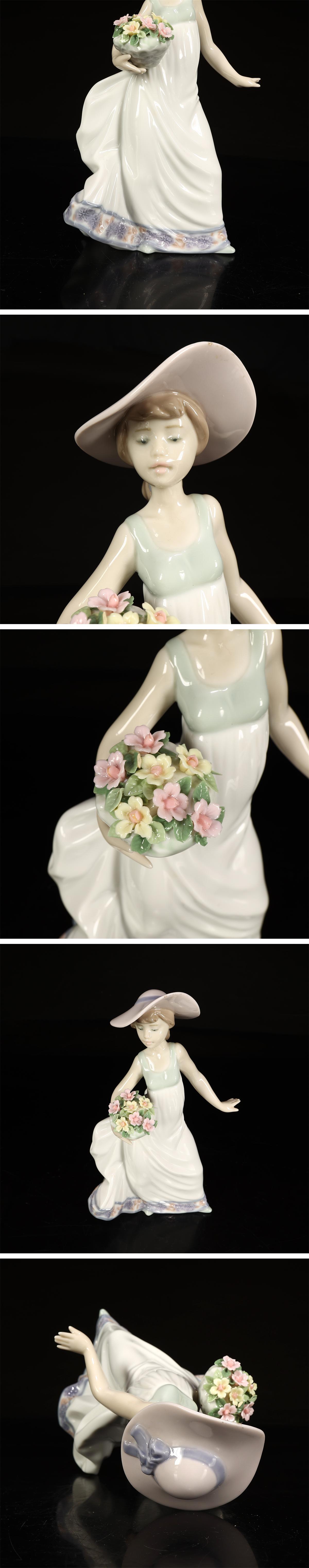 - 【吉】CL205 LLADRO 【リヤドロ】 フィギュリン 磁器人形 「春の花籠」 置物 高22.5㎝/花びらのかけあり!