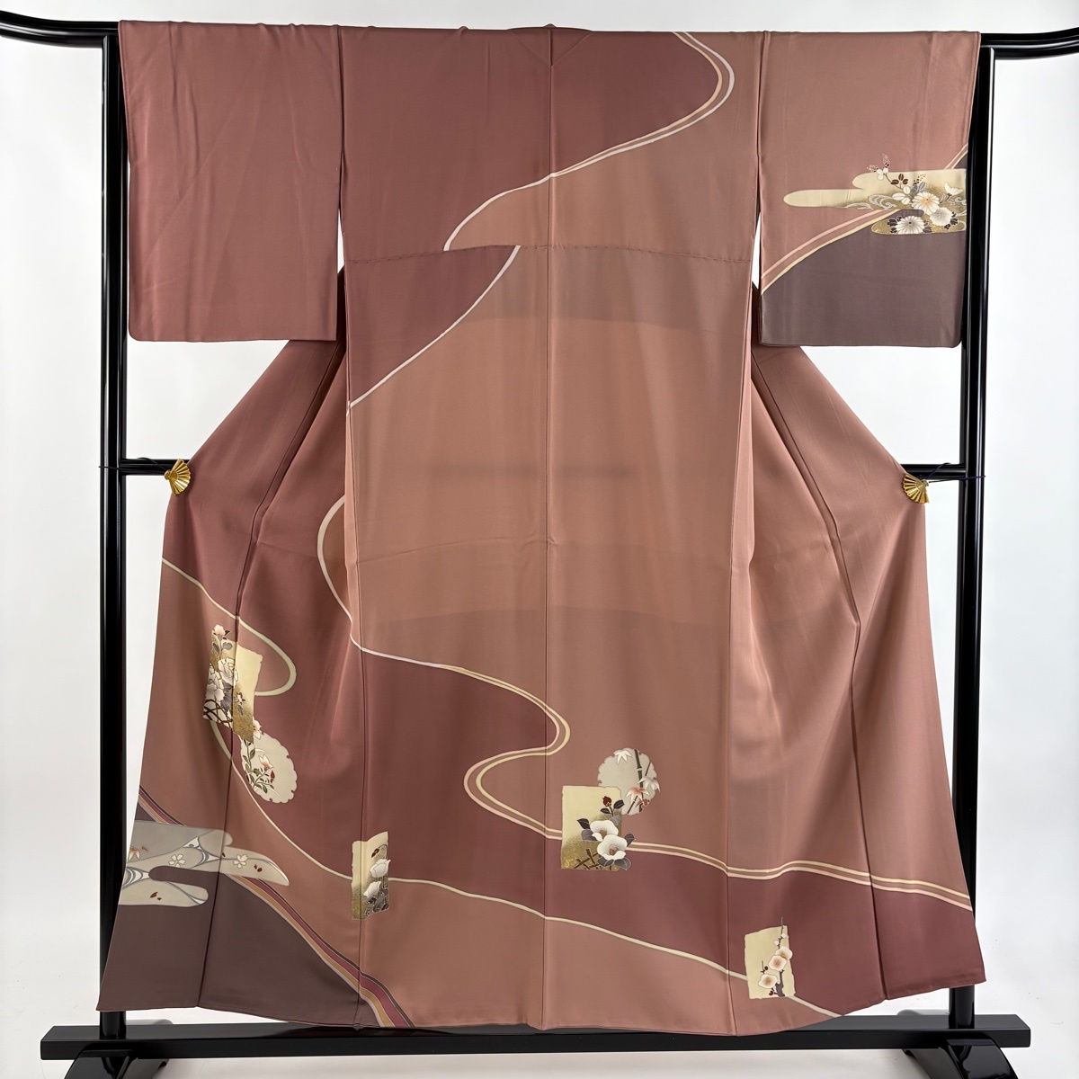 - 訪問着 身丈156cm 裄丈65cm M 袷 色紙 雪輪 金糸 金彩 薄小豆 正絹 秀品 【中古】
