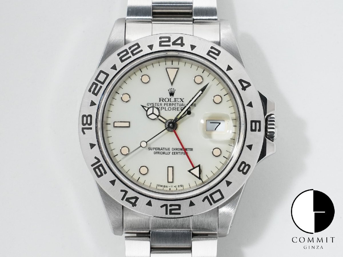 使用によるスレキズがございますが、ケースラグは太くエッジが立っており、ヘアライン仕上げも綺麗な良個体でございます。文字盤はアイボリーダイヤルで6時側のクロノメーター表記の中央が開いた「センタースプリット」となっており、針・インデックスのトリチウム夜光が綺麗に焼けた雰囲気抜群の個体です。付属品には、保証書、クロノメーター証明書、カレンダー(1986年)、国際サービス保証書、修理明細書など充実しております。Ref.16550アイボリー文字盤で、付属品が充実した個体は非常に希少ですので、コレクターズアイテムとしてもオススメな一本でございます。弊社提携工房にてオーバーホール済みの商品となります。