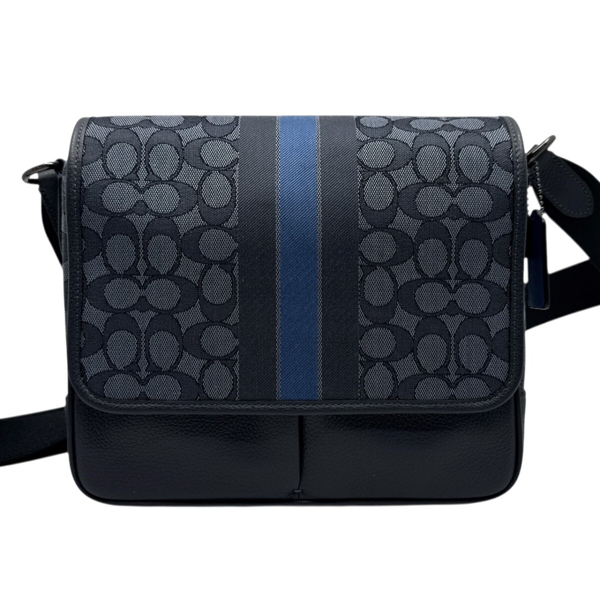 > 美品 コーチ シグネチャー キャンバス×レザー ショルダーバッグ ネイビー系 25K08-B3
