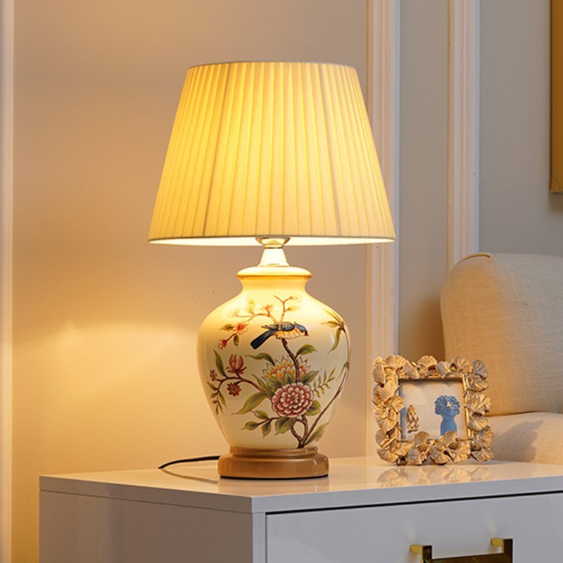 - 新品 卓上ライト アメリカ式 田園風 復古 リビング ベッドルーム インテリア照明 セラミックス 色絵(ホワイト+鳥)
