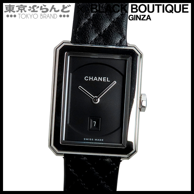 > 101826438 シャネル CHANEL ボーイフレンド H6585 ブラック SS レザー スクエア デイト 箱保 腕時計 レディース クォーツ式 電池式 未使用