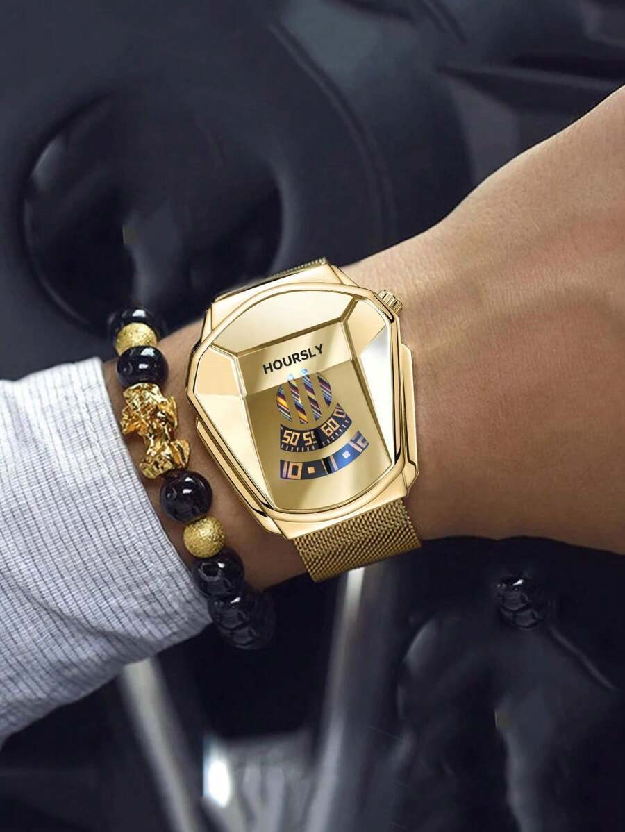 - 腕時計 メンズ セット ファッション クリエイティブ パーソナライズ ヒップホップ 大型ダイヤル クォーツ 腕時計 + ブレスレッ