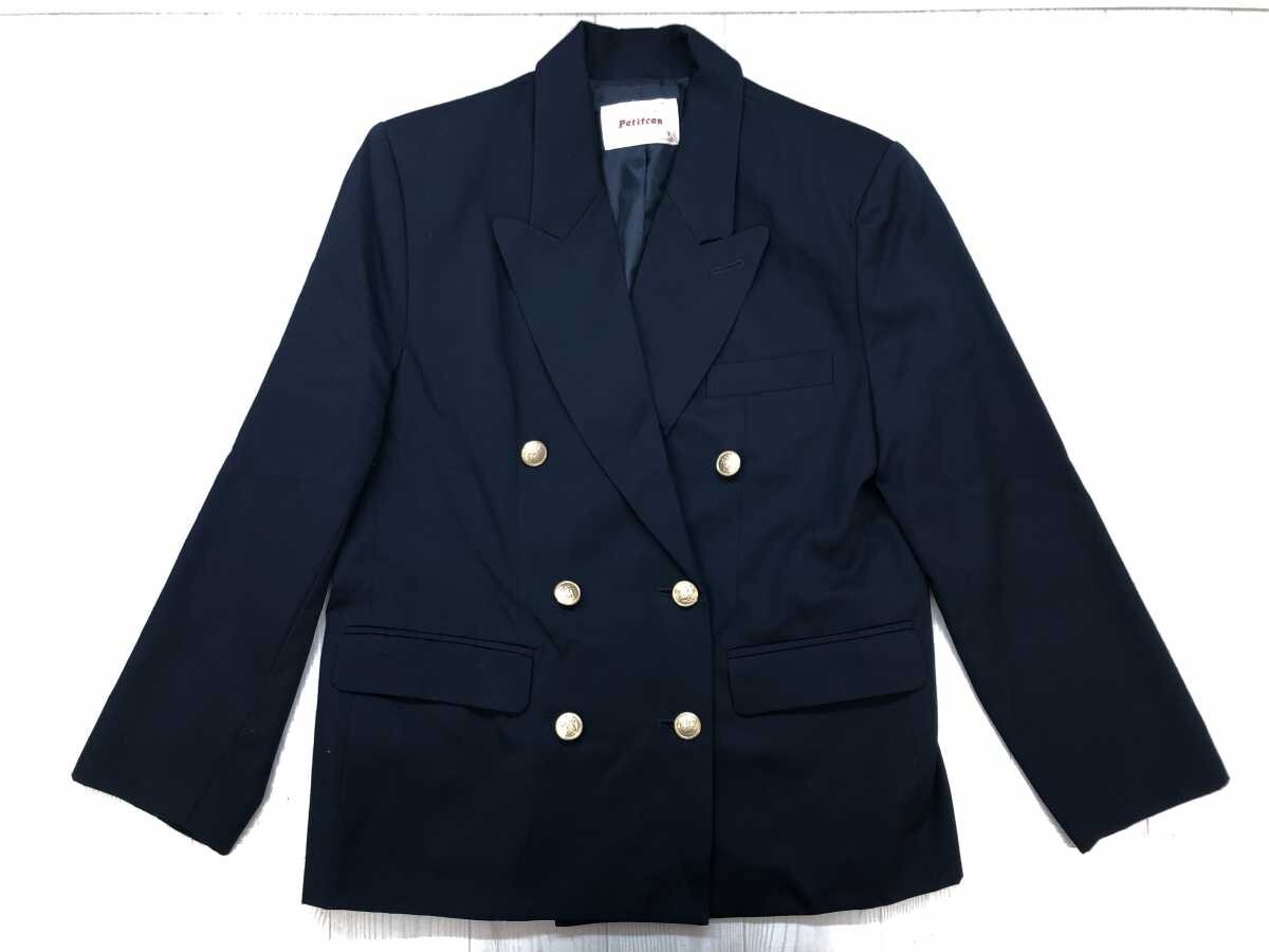 - Petitcan レトロ アメトラ フォーマル 金ボタン ブレザー ダブル テーラード ジャケット レディース ポリエステル65% レーヨン35% 9A 紺