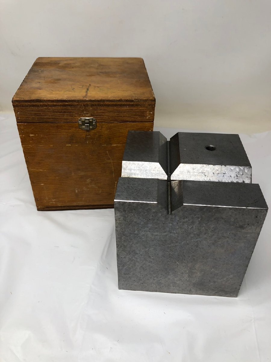 ◆V溝付 桝型ブロック 約150mm 桝ブロック ヤゲン台 Vブロック マスブロック 工具 中古◆17832