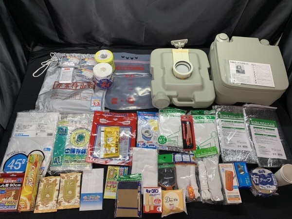 - J6-516(1) 防災用品 グッズ 詰め合わせセット 非常トイレ アルミシート レインコート 懐中電灯 等 防災 災害用 アウトドア【現状品】