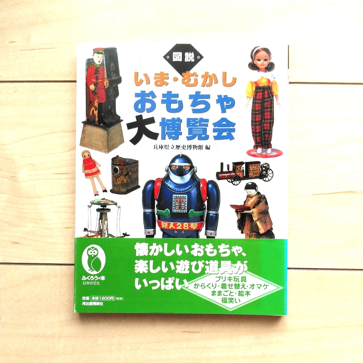 - ■『図説今昔おもちゃ大博覧会』兵庫県立歴史博物館編。2004年初版カバー帯。河出書房新社発行。童心に還って中身を繙くと涙が溢れます。