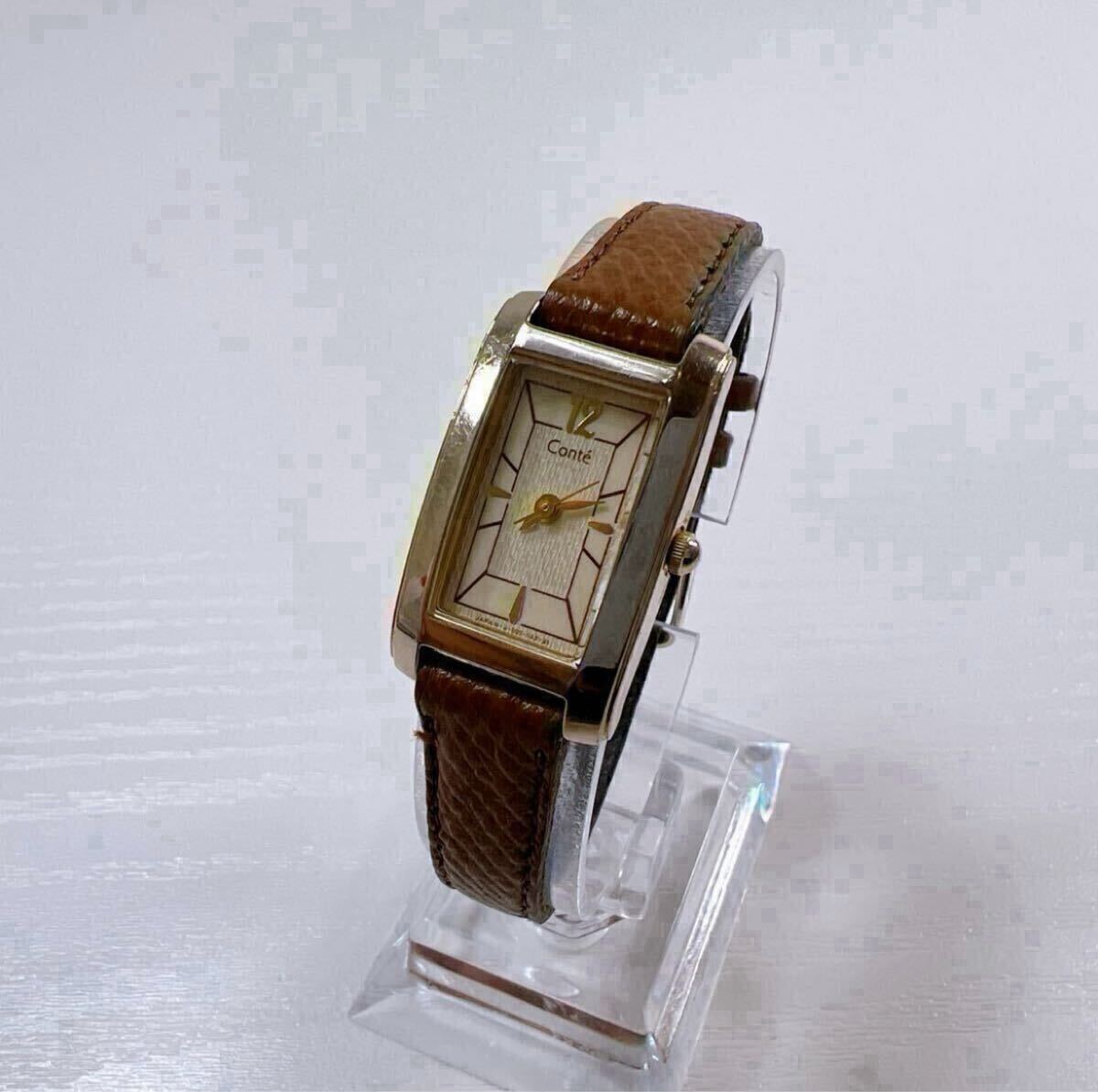 - 306【中古】RICOH Conte リコー レディース腕時計 アナログ クオーツ 3針 スクエアフェイス レザーベルト ブラウン 動作未確認 現状品